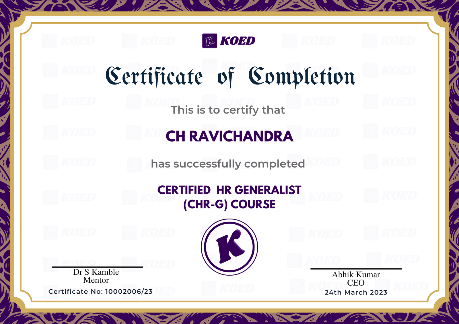 The certificate given upon successful completion of the course will be endorsed by Koed which has industry & Govt. of india recognition.