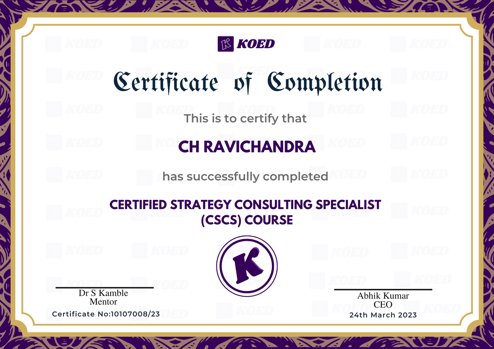 The certificate given upon successful completion of the course will be endorsed by Koed which has industry & Govt. of india recognition.