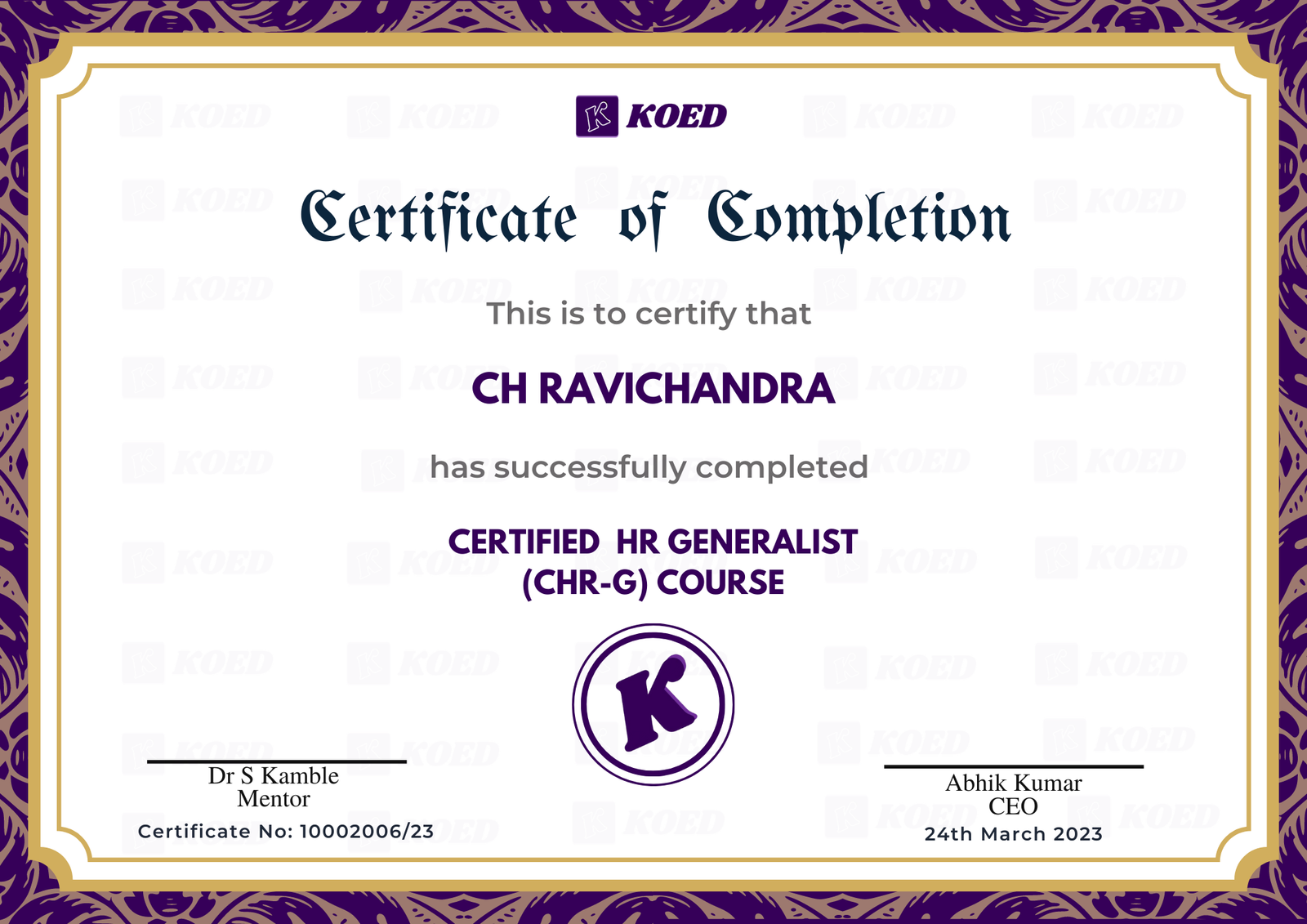 The certificate given upon successful completion of the course will be endorsed by Koed which has industry & Govt. of india recognition.