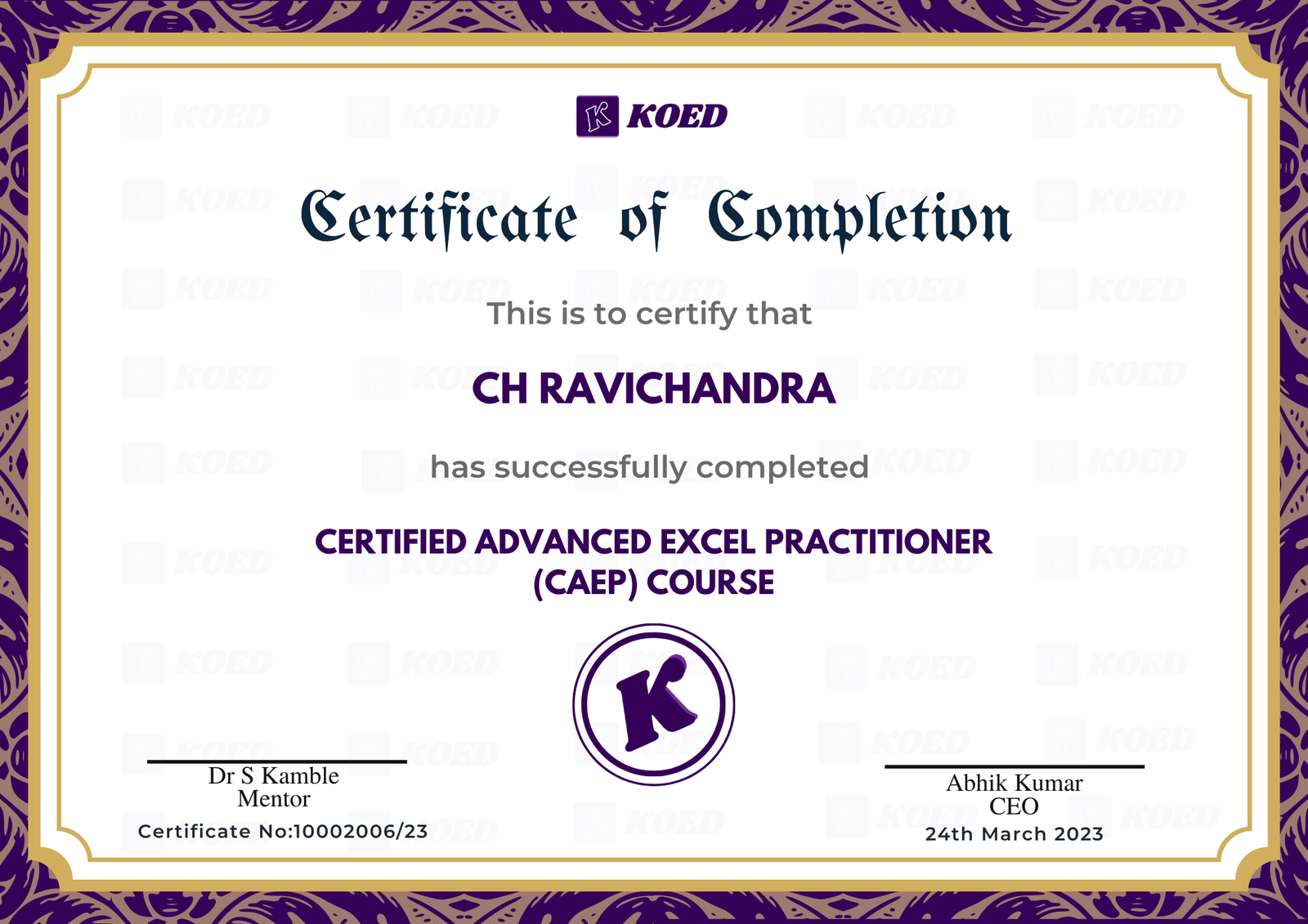 The certificate given upon successful completion of the course will be endorsed by Koed which has industry & Govt. of india recognition.
