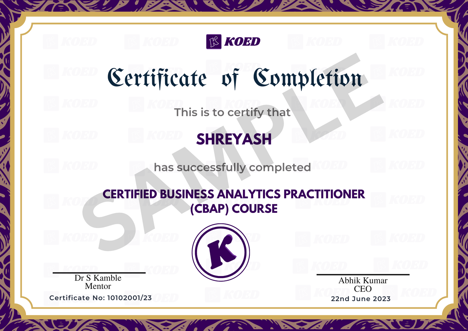 In your hand, will rest a Koed certificate once you test your knowledge in the exam and pass with flying colours. Once all modules of the course are done, our trainers will be greatly pleased to share your reward with you.