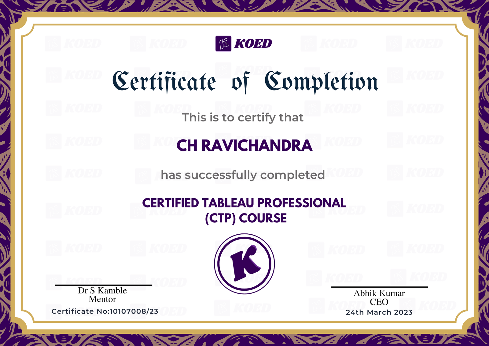 The certificate given upon successful completion of the course will be endorsed by Koed which has industry & Govt. of india recognition.